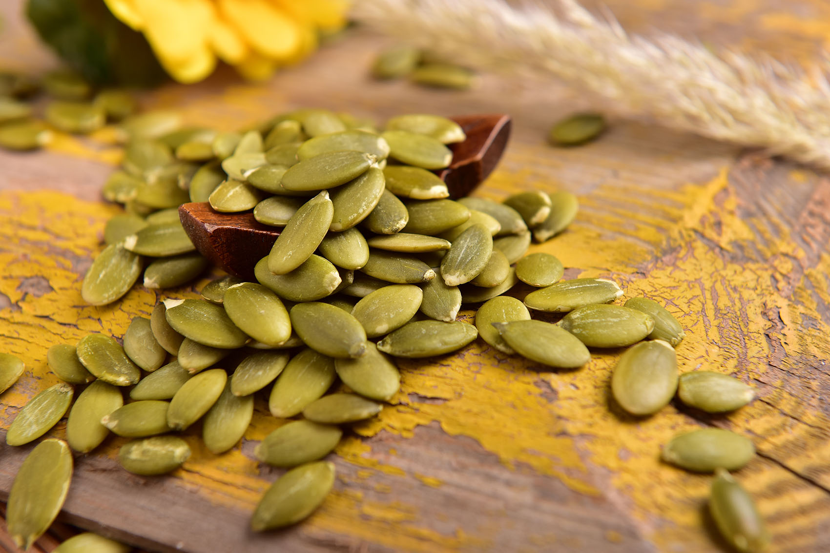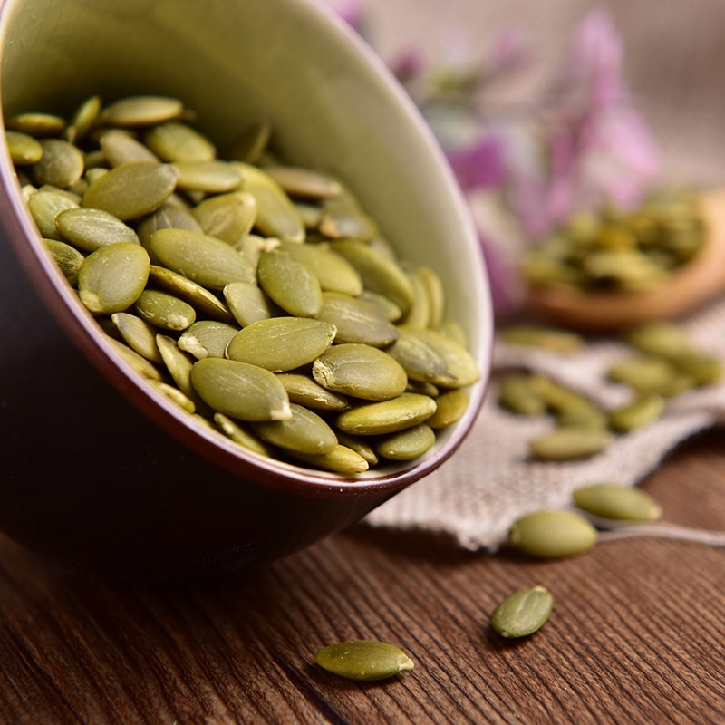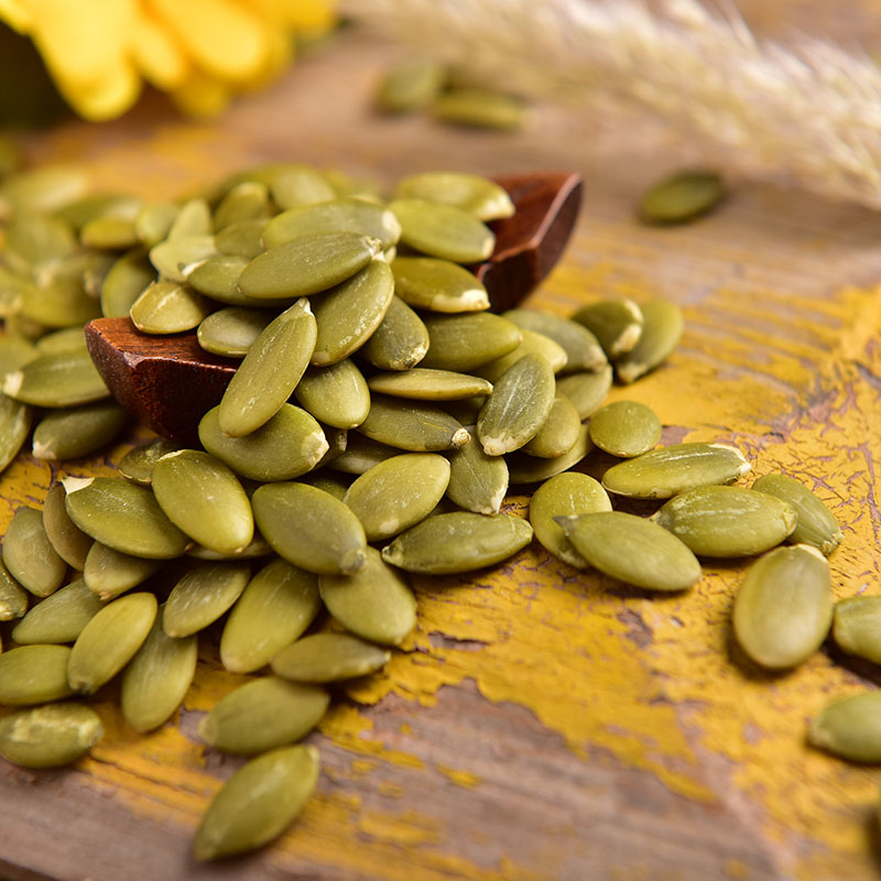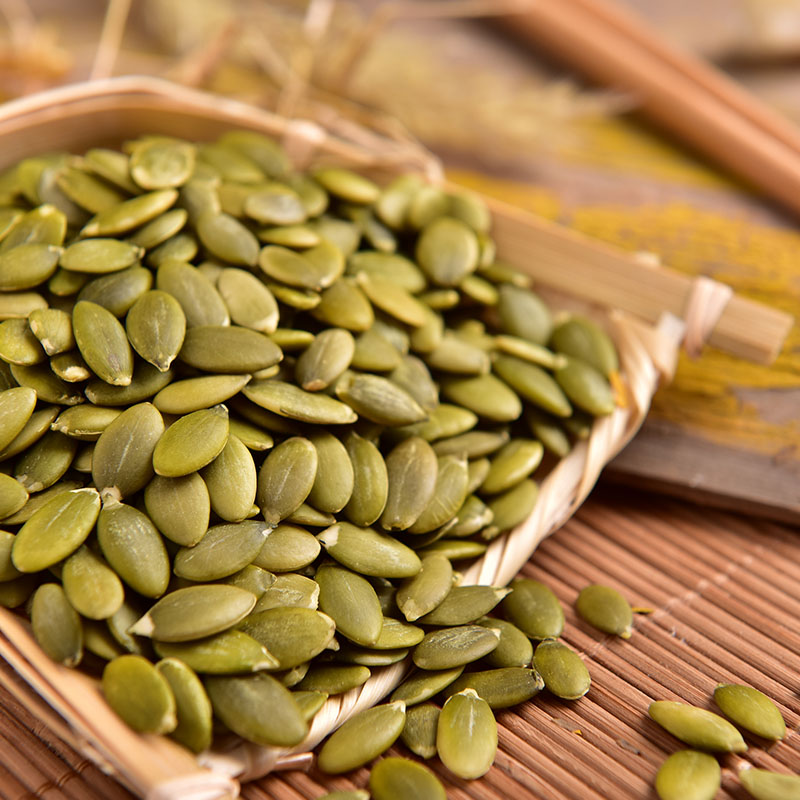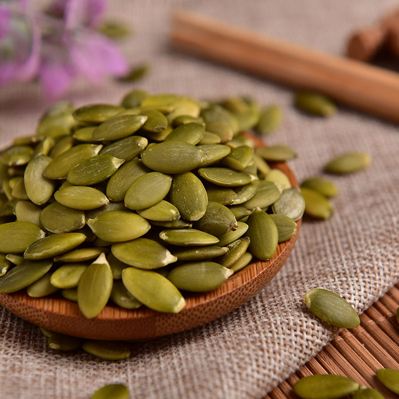 精选大颗粒南瓜籽进行去壳加工,色泽呈墨绿色,颗粒大且均匀完整 南瓜籽仁AA级